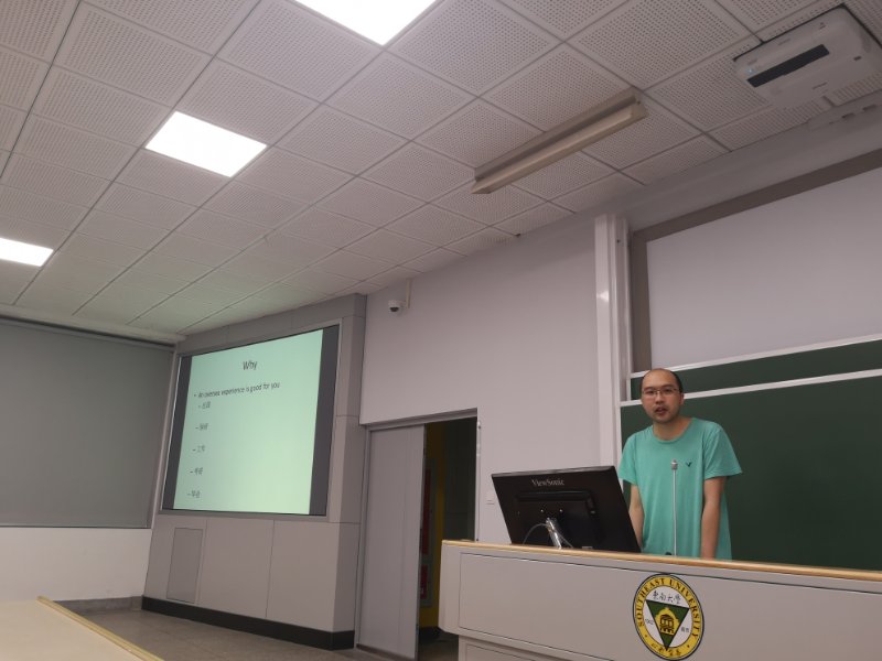 接着由仪科14级曾获得国家留学基金委项目支持的优秀学生李坤做经验分享,就项目申请过程中的注意事项做了着重介绍。同时,李坤同学结合自身的留学交流经历向同学们提出了一些关于如何准备本科国际的建议。