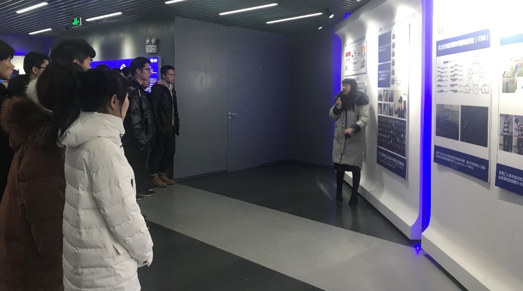师生们首先进入研究院展厅,在工作人员的带领下,对该所的成立背景、发展历程和主要的研究方向有了大致的了解。随后同学们观看并亲身体验了对人脸识别、关键点定位、性别和表情识别、人体骨骼点检测、四路无人驾驶等技术的现场演示。