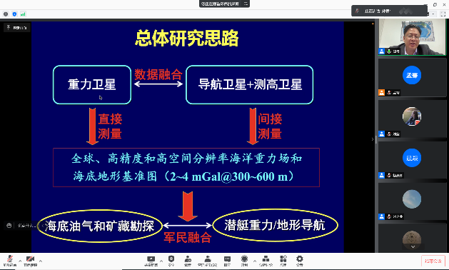郑伟教授围绕“卫星数据处理和重力反演”,“我国下一代地球、月球、火星和金星重力卫星技术方案”,“水下重力匹配导航优化算法,构建全球、高精度和隐蔽性的水下组合导航系统”三个方向介绍了研究心得,鼓励大家了解国家瓶颈问题,坚持深入自主研究。