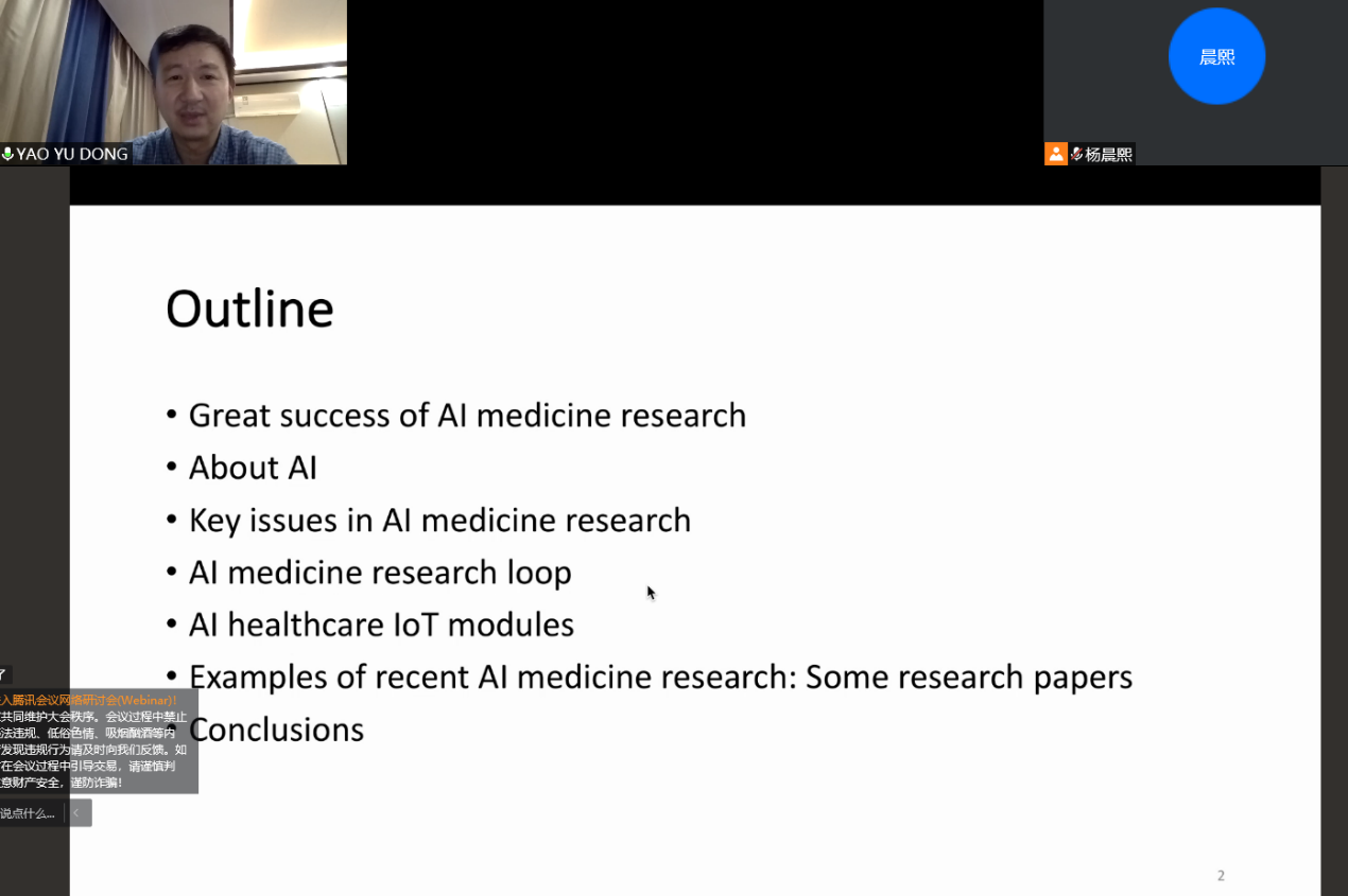 2022年5月13日,仪科学院三十周年院庆系列学术报告第21场在线上成功举办。本场报告我们邀请到了加拿大工程院院士姚育东,为仪科教师和青年学子们带来了题为“AI and Biomedical Engineering Research”的精彩报告。本次报告主要探讨人工智能、机器学习等技术在医学影像分析、COVID-19检测及医疗物联网方面的应用。基于此主题,姚教授与永利官网老师和学生们开展了热烈的交流。