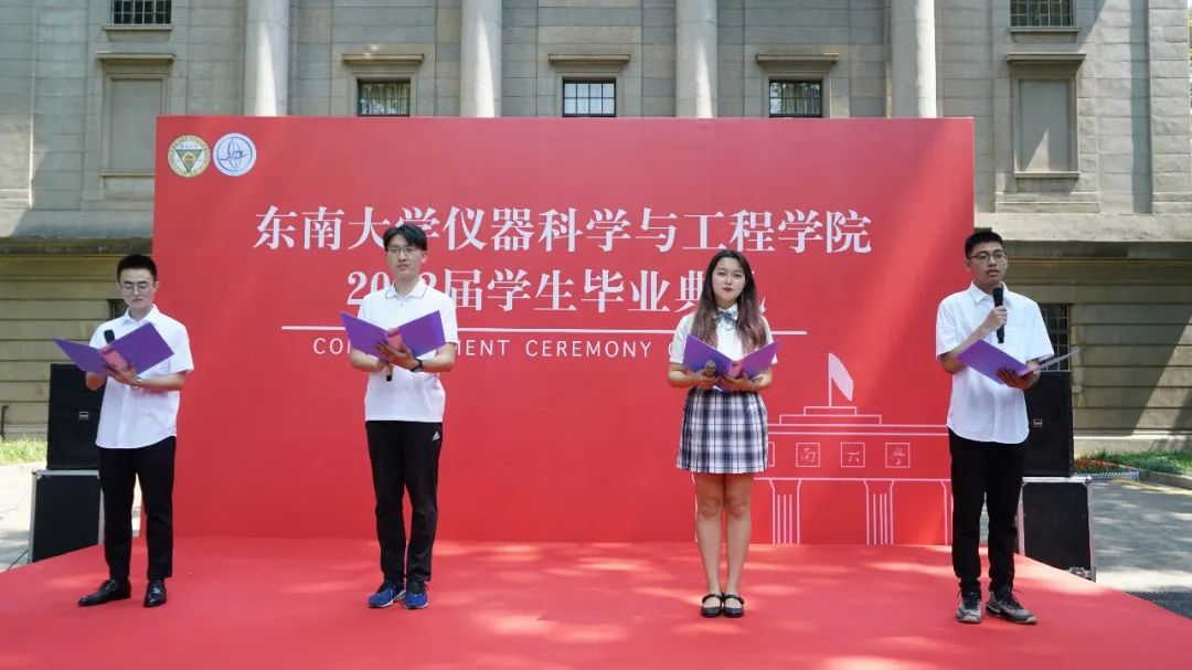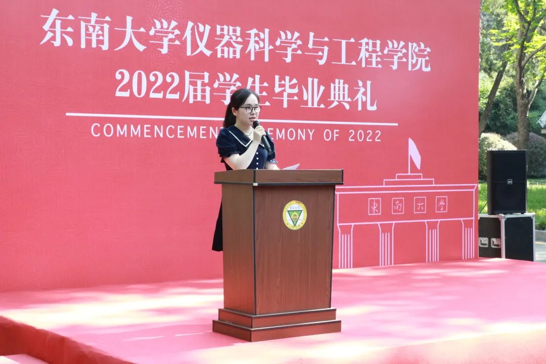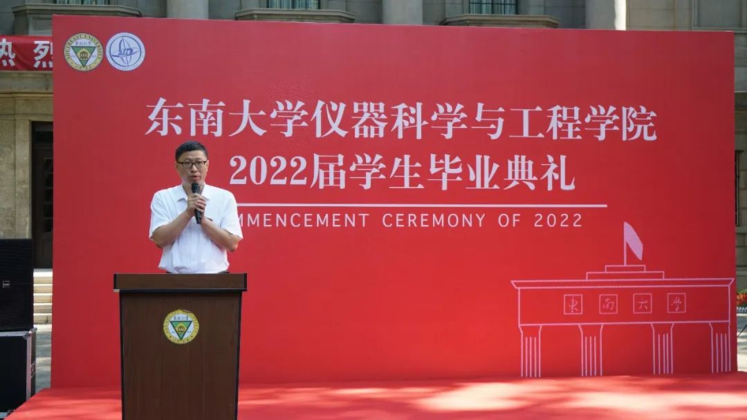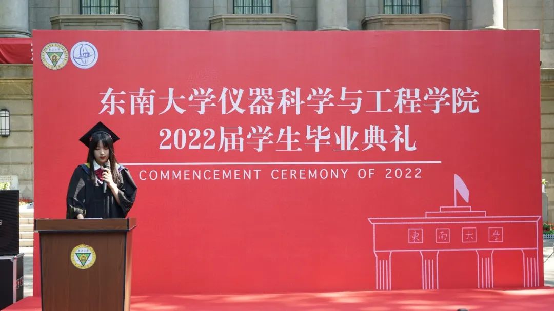 2022年6月15日上午8点半,yl23455永利官网2022届学生毕业典礼在四牌楼校区大礼堂前隆重举行。机器人传感与控制技术研究所所长、yl23455永利官网首席教授宋爱国老师,学院党委书记王军老师,学院主持工作副院长刘澄玉老师,学院党委副书记兼副院长丁小丽老师,副院长赵立业老师、祝雪芬老师以及各年级辅导员、班主任、导师代表出席了典礼。仪科学院2022届全体本硕毕业生均参与此次毕业典礼。毕业典礼由学院辅导员彭袁圆主持,在热情洋溢的《yl23455永利官网校歌》中拉开序幕。