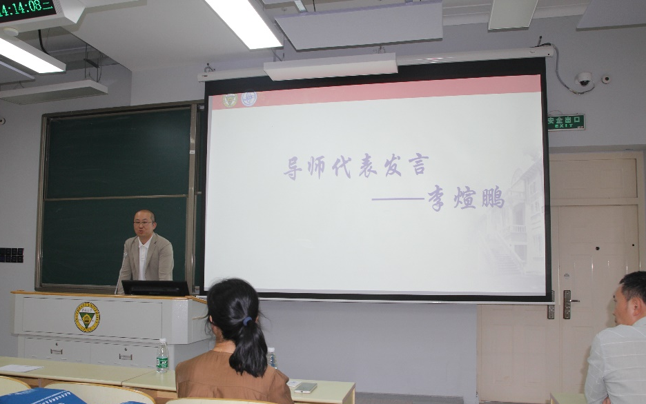 李煊鹏老师作为导师代表,首先表达了对新同学的热烈欢迎和由衷祝福,他结合自己的工作和学习经验,给同学们的学习生活提出了三点建议:一是要和导师多交流、多请教,不断夯实专业基础,打造过硬本领;二是要注重不同学科之间的交流融合,从多个视角去开展科研工作;三是要仰望星空、脚踏实地,以优秀前辈为学习目标,坦然面对未来挑战。