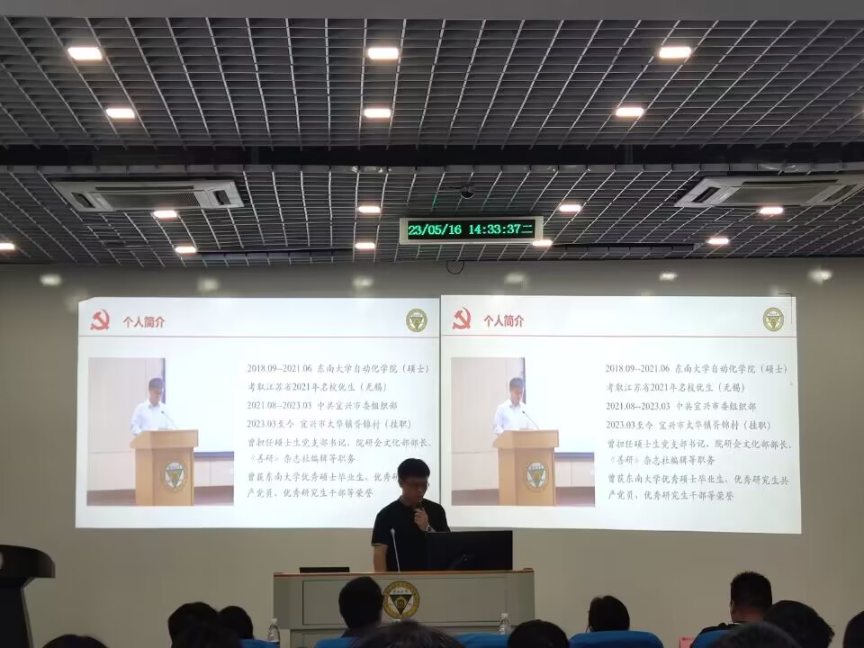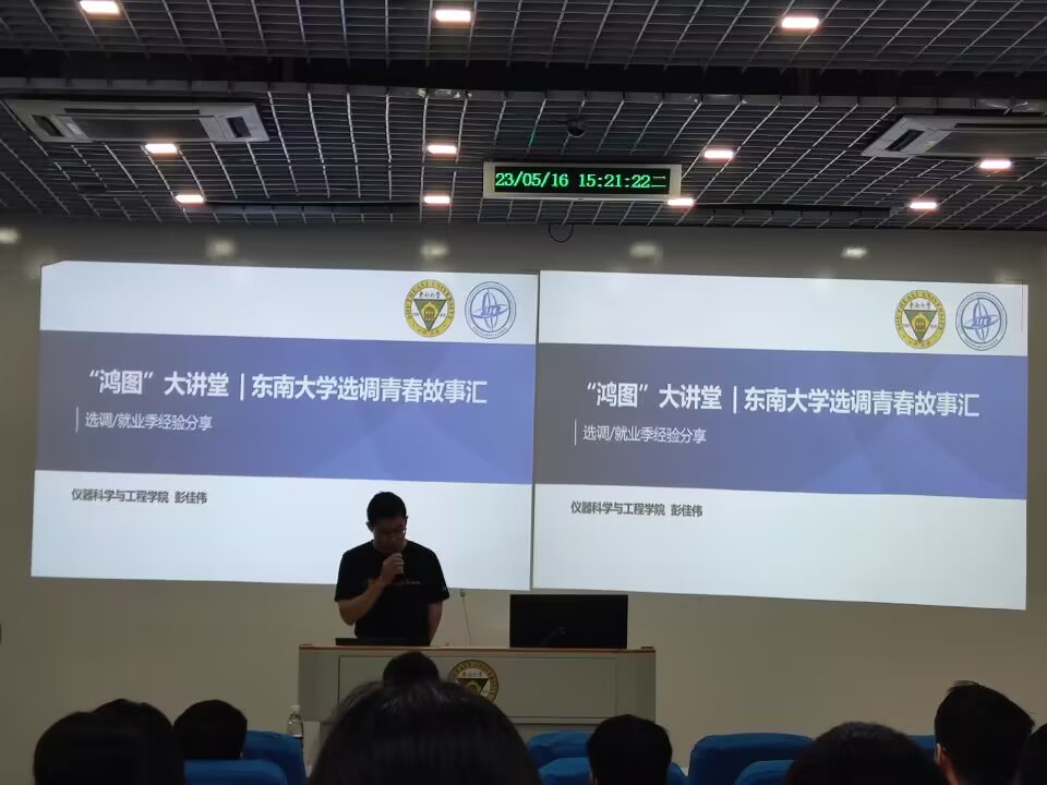 2023年5月16日,在东南院102报告厅,yl23455永利官网自动化学院与yl23455永利官网成功举办“鸿图”大讲堂——选调青春故事汇。本次活动由自动化学院主办,yl23455永利官网协办,旨在为有意向申请选调的同学们提供一个了解“名校优生”计划、各地定向选调政策的平台。本次讲座邀请了两位已经毕业的学长学姐,分别是自动化学院的邱厚瀚学长和陈思睿学姐,以及仪科学院即将毕业的彭佳伟学长,他们从不同的角度和层面,分享了自己的选调经历和心得。